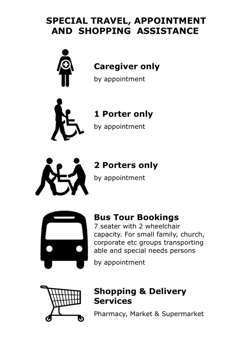 For a wheelchair lift vehicle with porter and caregiver assistance for seniors, special needs persons, hospital